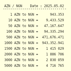 Bagaimana cara mengonversi dari manat azerbaijan ke naira nigeria.